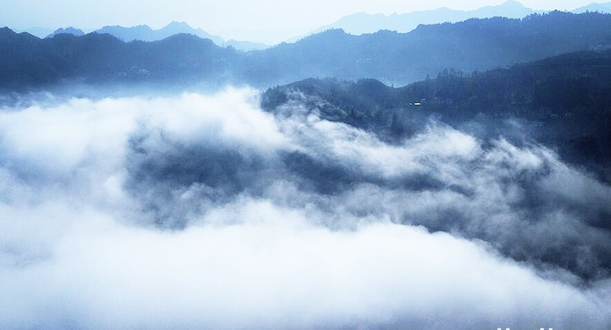 12月6日,进入冬季,由于温差、风力和气压等原因,在恩施市芭蕉侗族乡集镇、灯笼坝、黄连溪一带形成壮观的云海,与新农村、茶园及盘山公路构成一幅幅纯净壮丽的画面。