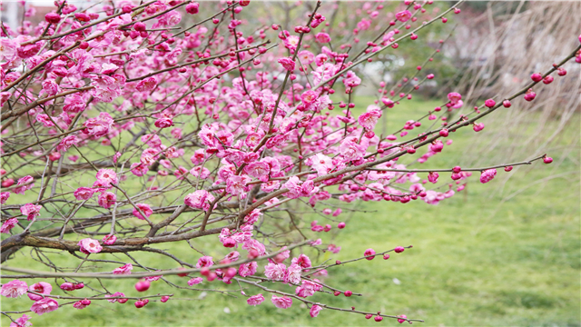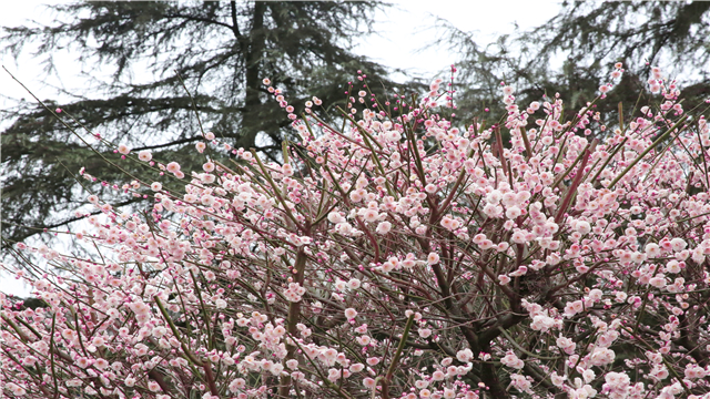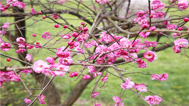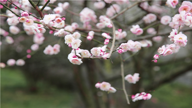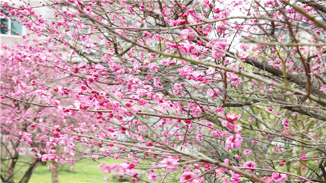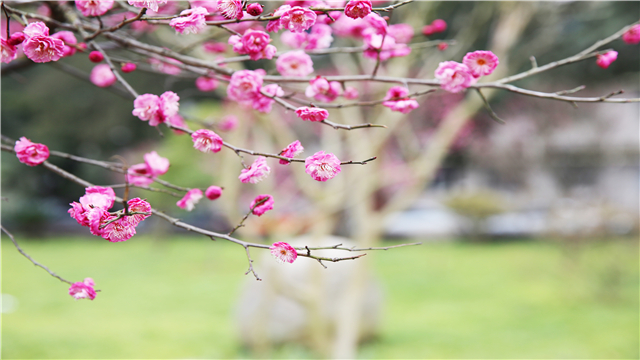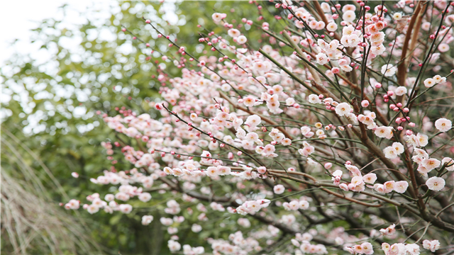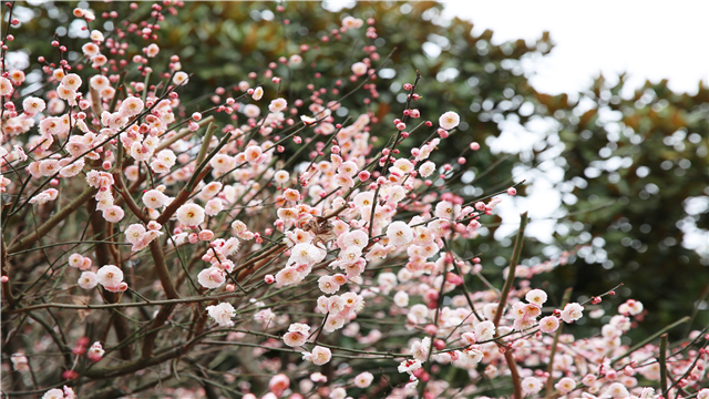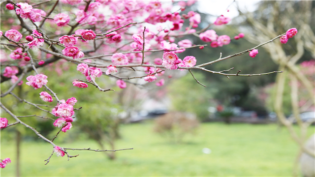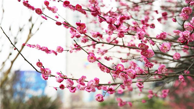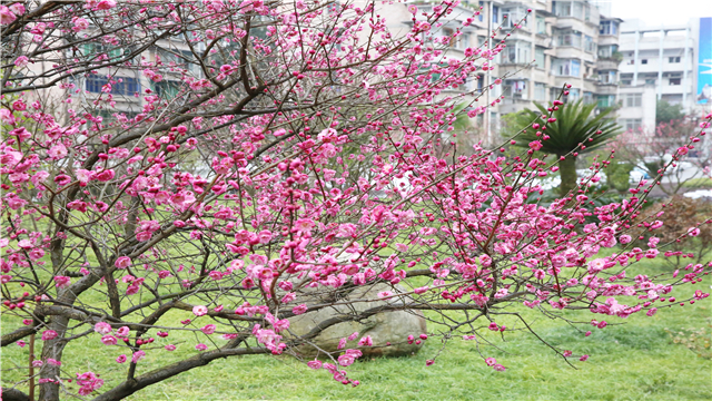 10日,恩施州委大院内梅花盛开,姹紫嫣红,引过往人群驻足拍照。熊羲/摄