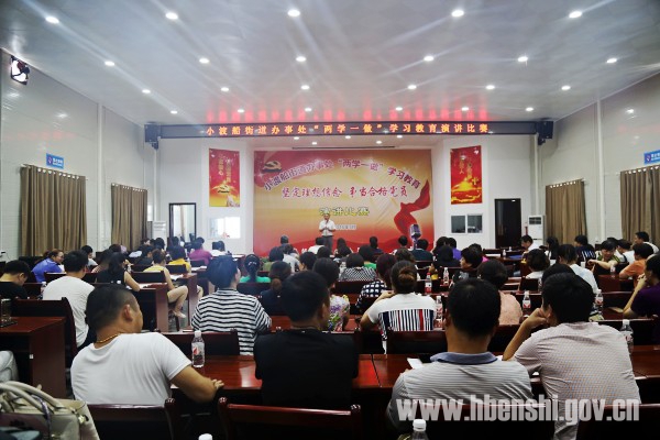 7月22日,小渡船街道办事处举办“两学一做”学习教育主题演讲比赛。办事处全体机关党员干部,各村(居)、办直各单位党组织负责人及部分党员代表共130余人观看比赛。