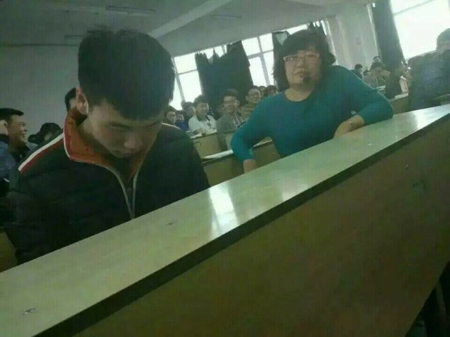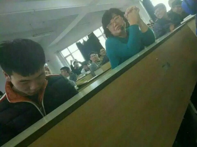 13日,@追风少年刘全有晒出一组网友投稿图,同学上课开黑,没发现老师坐旁边……