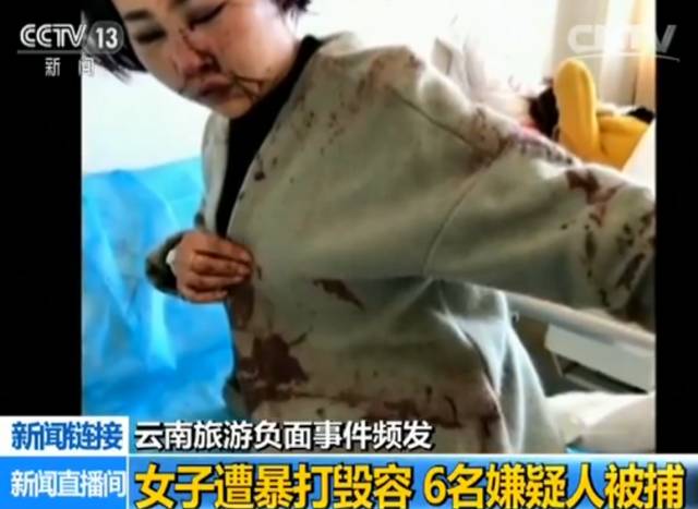 今年1月24日晚,一位网友发微博称,2016年11月11日凌晨3点多,在云南丽江一家烧烤店吃饭时,遭十余名男子殴打半个小时,施暴者还拿碎酒瓶划伤她的脸部,并在拍摄视频威胁后扬长而去。仅仅一夜,这条消息迅速引爆社交网络。该案件中6名犯罪嫌疑人,因涉嫌寻衅滋事罪已被执行逮捕。