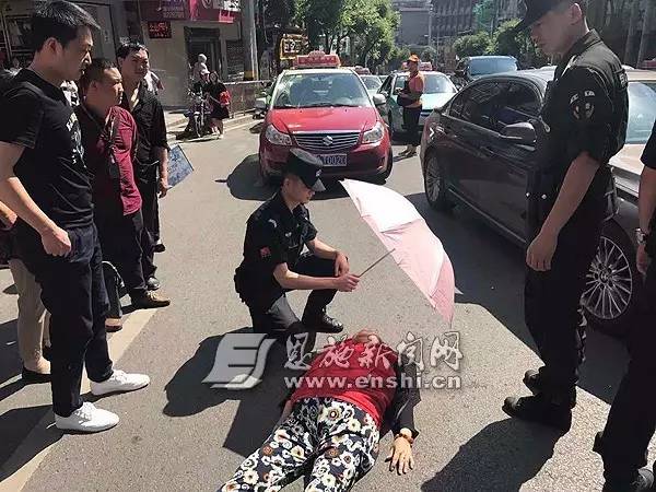 昨日上午,一老人在州城舞阳坝天桥附近被车撞倒,晕厥不醒,恩施市公安局反恐特警大队民警在巡逻中发现后,立即前去查看,一面维持现场交通秩序,一面与在场热心群众一起为老人撑伞,待救护车到达现场后,配合医护人员将老人送至医院救治。