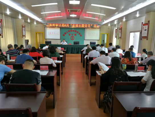 6月5日下午,恩施州审计局6月“支部主题党日”活动在机关七楼会议室举行。机关在职党员、部分退休党员及群众代表参加活动。