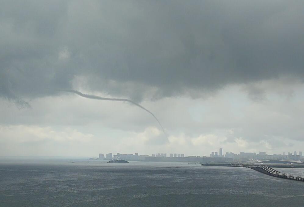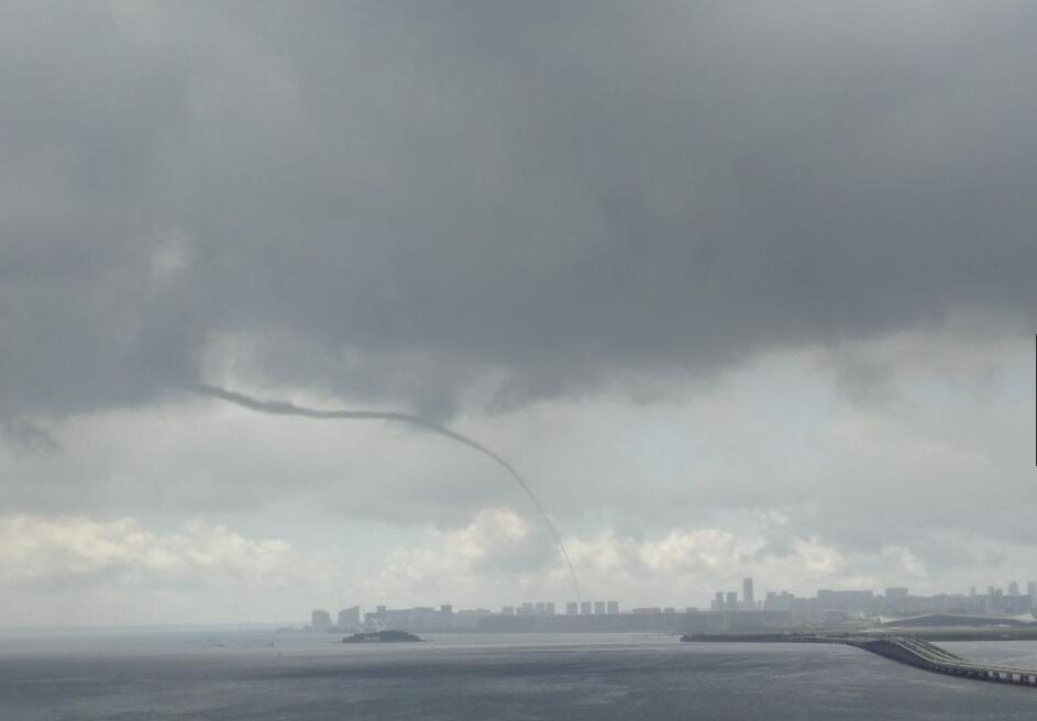 央视网消息:2017年7月3日,厦门,在厦金海域出现疑似“龙吸水”现象。在低垂的铅云和海平面之间,有一条水柱相连,上端呈漏斗状,场面十分壮观。据了解,水龙卷形成需具备三个条件:首先空气必须高温、高湿;第二要有旺盛的积雨云;第三是上升气流和下沉气流间的切变要很大。