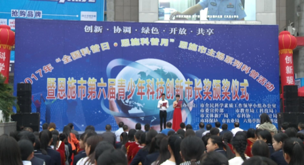 云上恩施报道(融媒体记者詹鹏)9月22日,以“创新驱动发展、科学破除愚昧”为主题的2017年全国科普日恩施科普月系列活动暨恩施市第六届青少年科技创新市长颁奖仪式在恩施市喜福会广场举行。