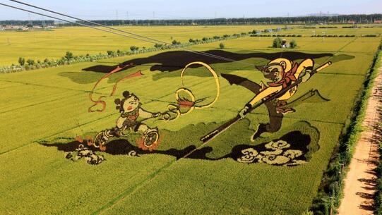 8月22日,辽宁省沈阳市沈新区兴锡伯龙地创意农业产业园内的“3D稻田画”《大闹天宫》等17幅进入最佳观赏期。据悉,“稻田画”利用先进的3D技术和透视技术,种植不同品种有着不同颜色叶子的水稻,绘制出平面,立体、镂空、线条四种不同风格的“稻田画”。“稻田画”将创意农业与休闲旅游相结合,成为当地农民增收的一个新动力,同时也为城市人休闲观光提供了新场所。