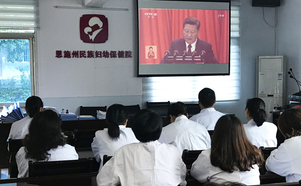 利川市南坪乡卫生院一线医务工作者观看党的十九大会开幕会