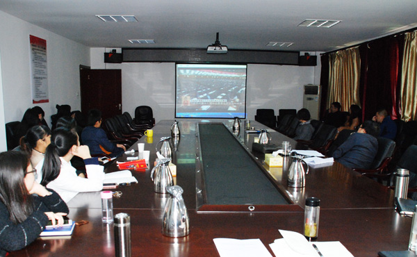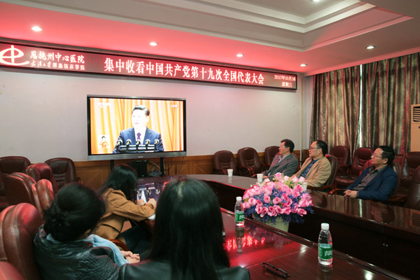 州卫生计生委机关党员正在观看党的十九大开幕会盛况