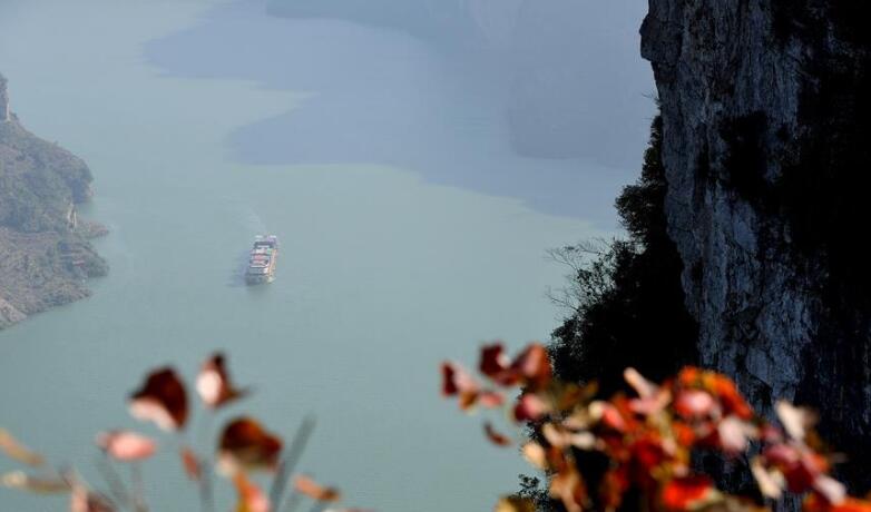 这是11月25日拍摄的长江三峡西陵峡江段红叶景色。小雪节气过后,三峡红叶与江水交相辉映,美景如画。来源:新华社 雷勇 摄