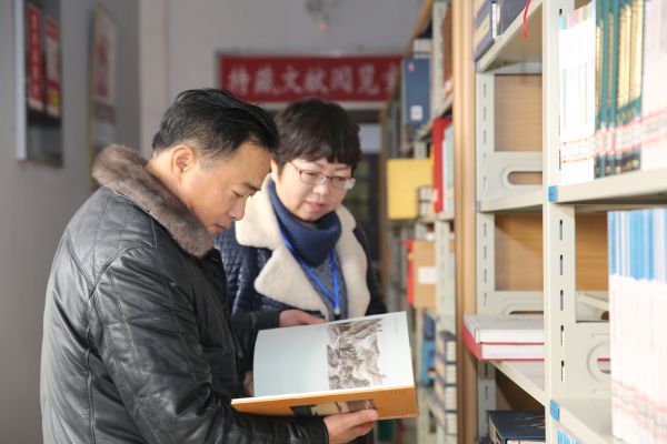 谭冬青翻阅州图书馆馆藏地方文献