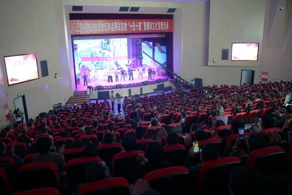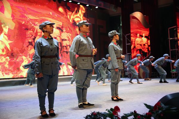 情景剧《绝壁天河》再现先辈们战天斗地在崖壁上开凿水渠的伟大壮举;配乐朗诵《泉口,我们的精神源泉》用诗词吟诵张植弟带领泉口百姓劈石砌坎、拦山筑梯的艰苦奋斗的精神气概。