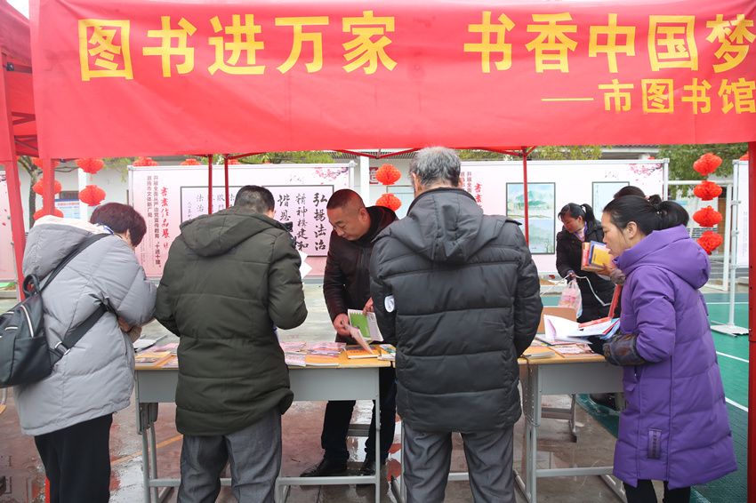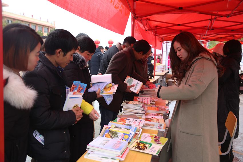 活动现场,图书馆展台吸引了众多读者的目光,村民们争相翻阅索取,喜上眉梢。此次免费送去的图书内容丰富,涉及农业种植、畜牧养殖、农技知识、初中阅读写作、大众文学等300余册。现场孩子家长连连称赞这个活动搞得好,因为孩子平时买书要花好几百块,而这次活动现场免费送书,家长一口气选了好几本作文书带给孩子,当地农民群众纷纷感谢图书馆送来的这份新年文化大餐。