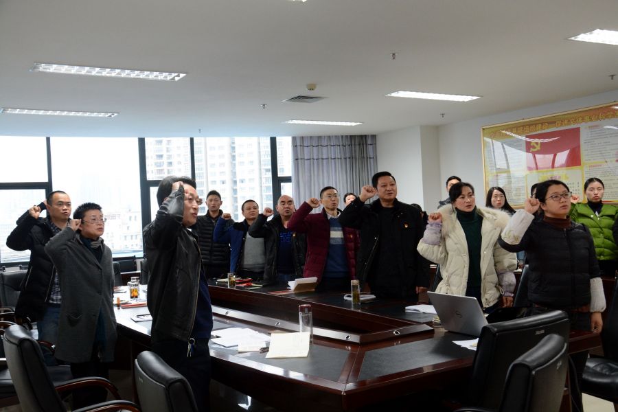 全体党员面向党旗,重温入党誓词,唤醒“最初的记忆”,坚定“不忘初心、牢记使命”的崇高信念。