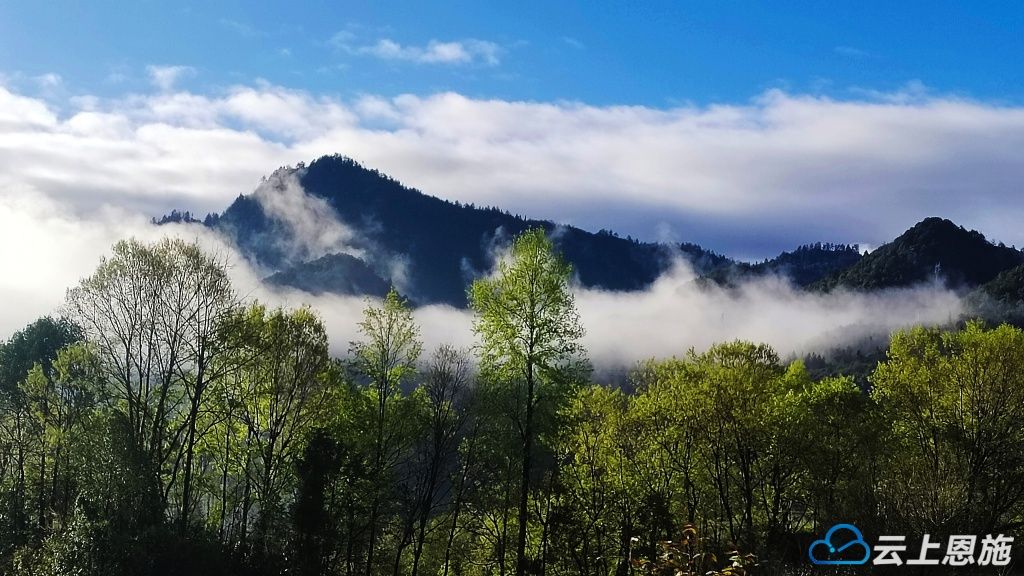 3月30日清晨,雨歇容美,天地间晕开一层澄澈的清新。凌晨的雨珠还挂在枝头,顺着叶尖缓缓滴落。晨雾如轻纱般缭绕山间,将连绵的峰峦晕染成淡淡的水墨画,朦胧又温柔。