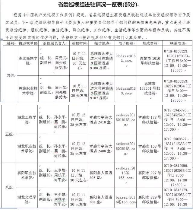 【原标题:湖北近半省属高校来了巡视组!点开看组长手机号】