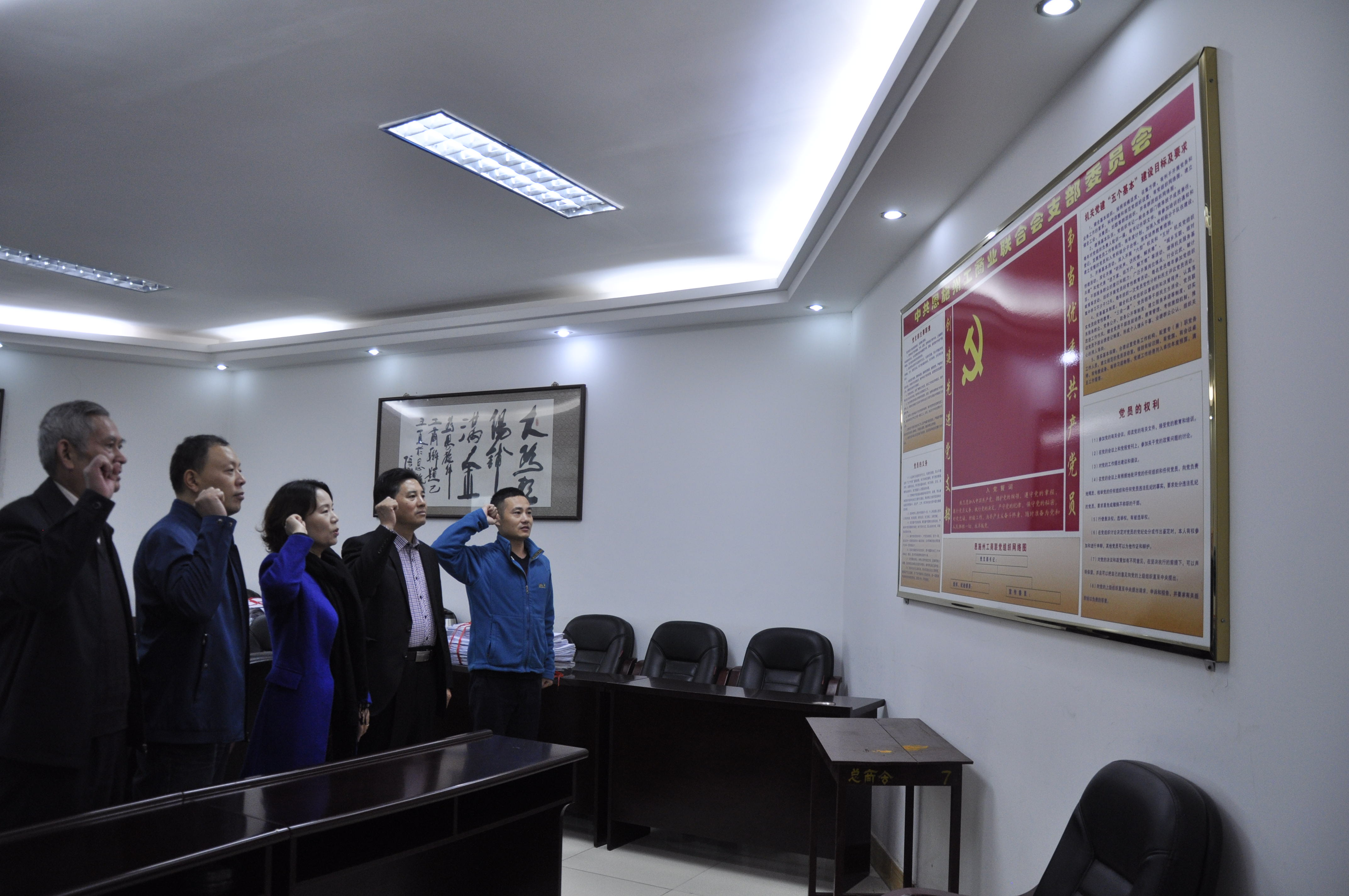 活动中,佩戴党徽的全体党员现场缴纳了11月份党费、面向党旗庄严宣誓,重温入党誓词,集体诵读了《党章》第七章。