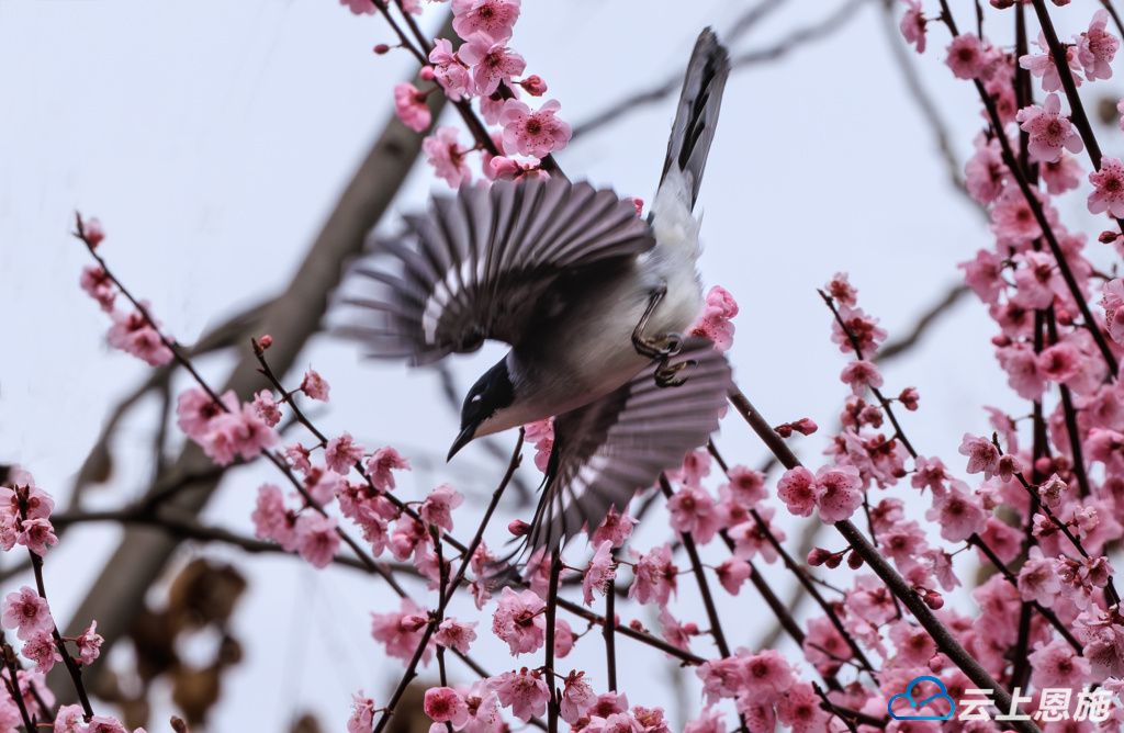 3月9日,走进容美镇溇水两岸,粉红色的梅花,婀娜多姿,映红了山谷。