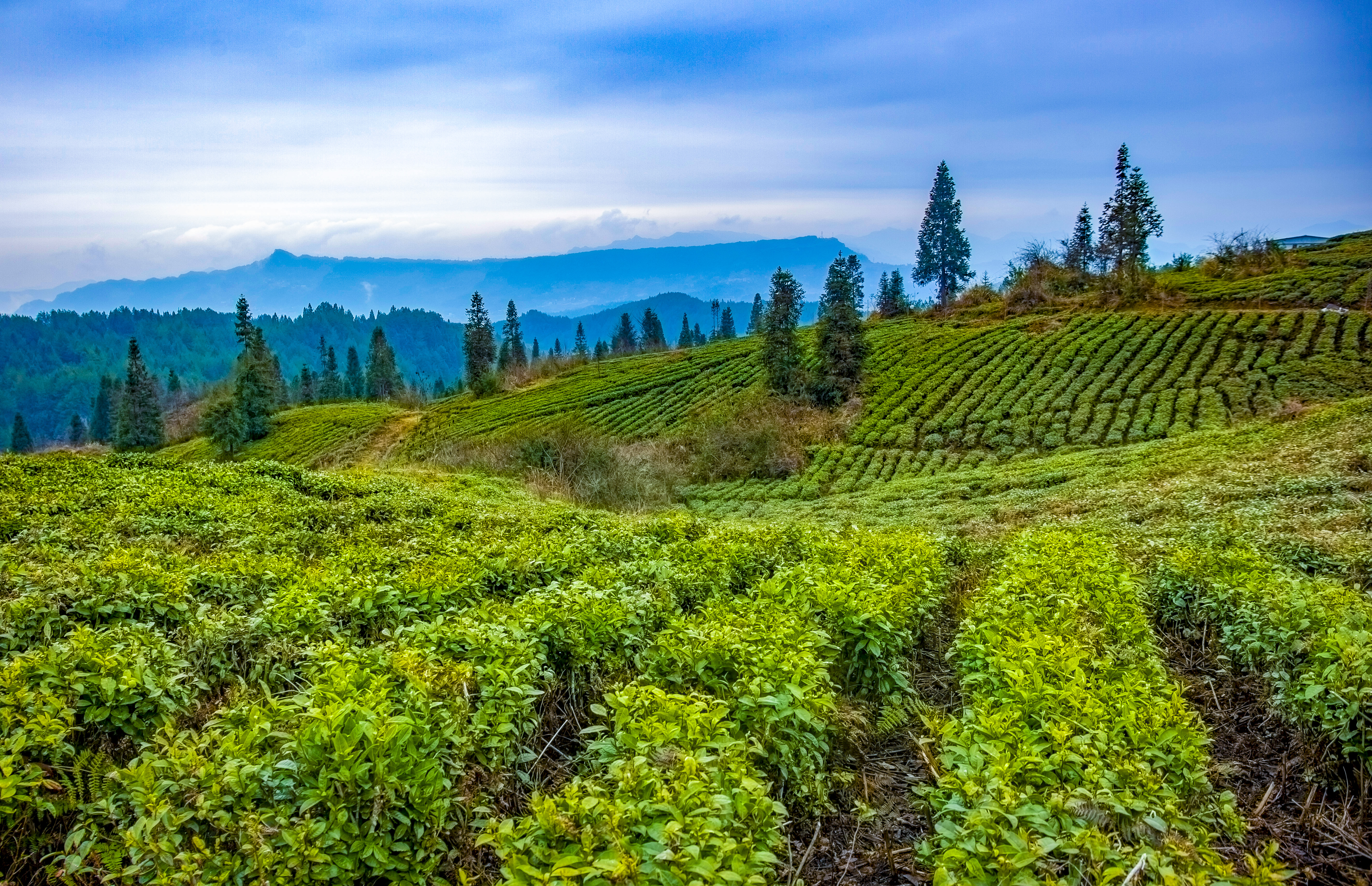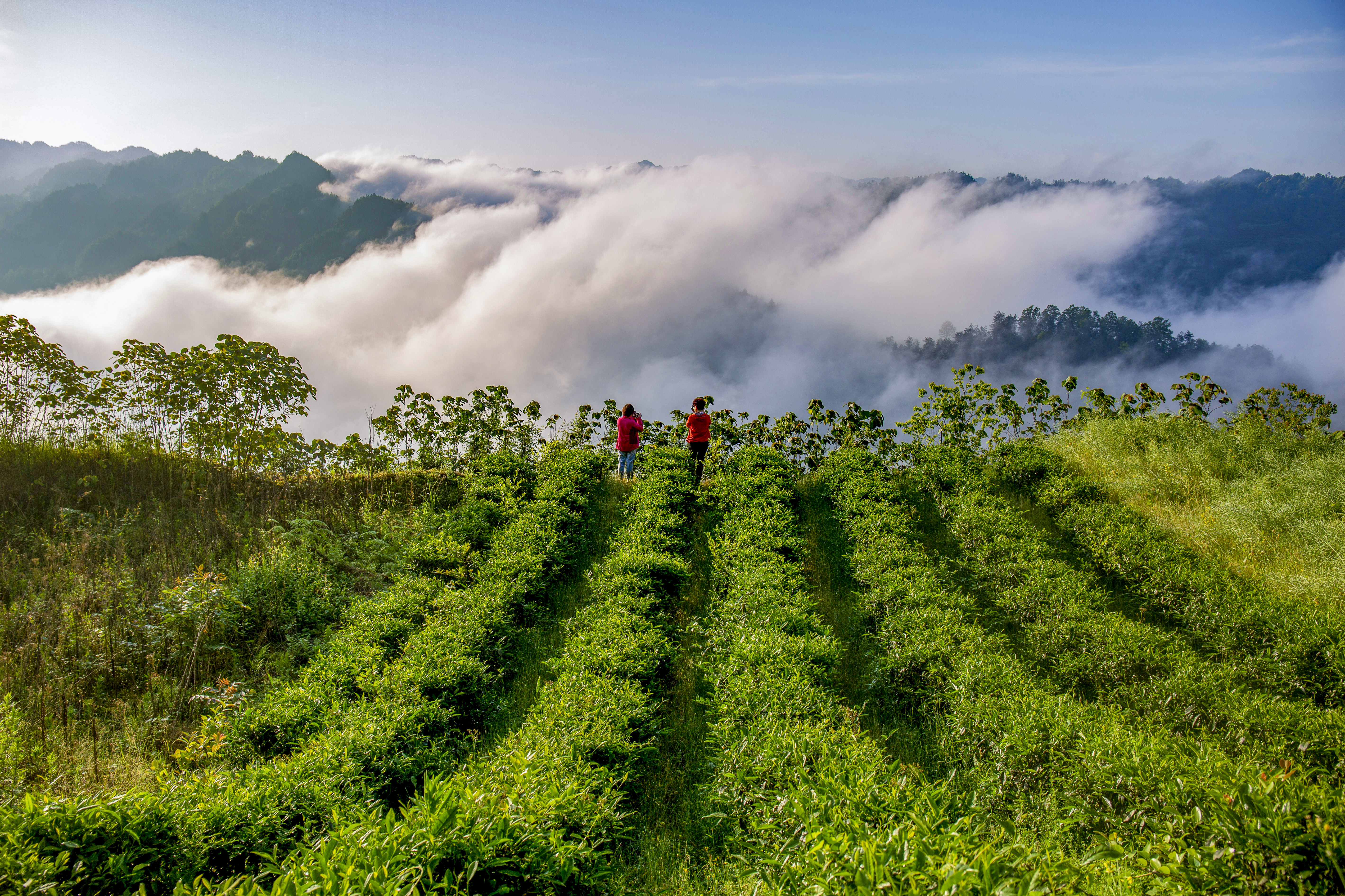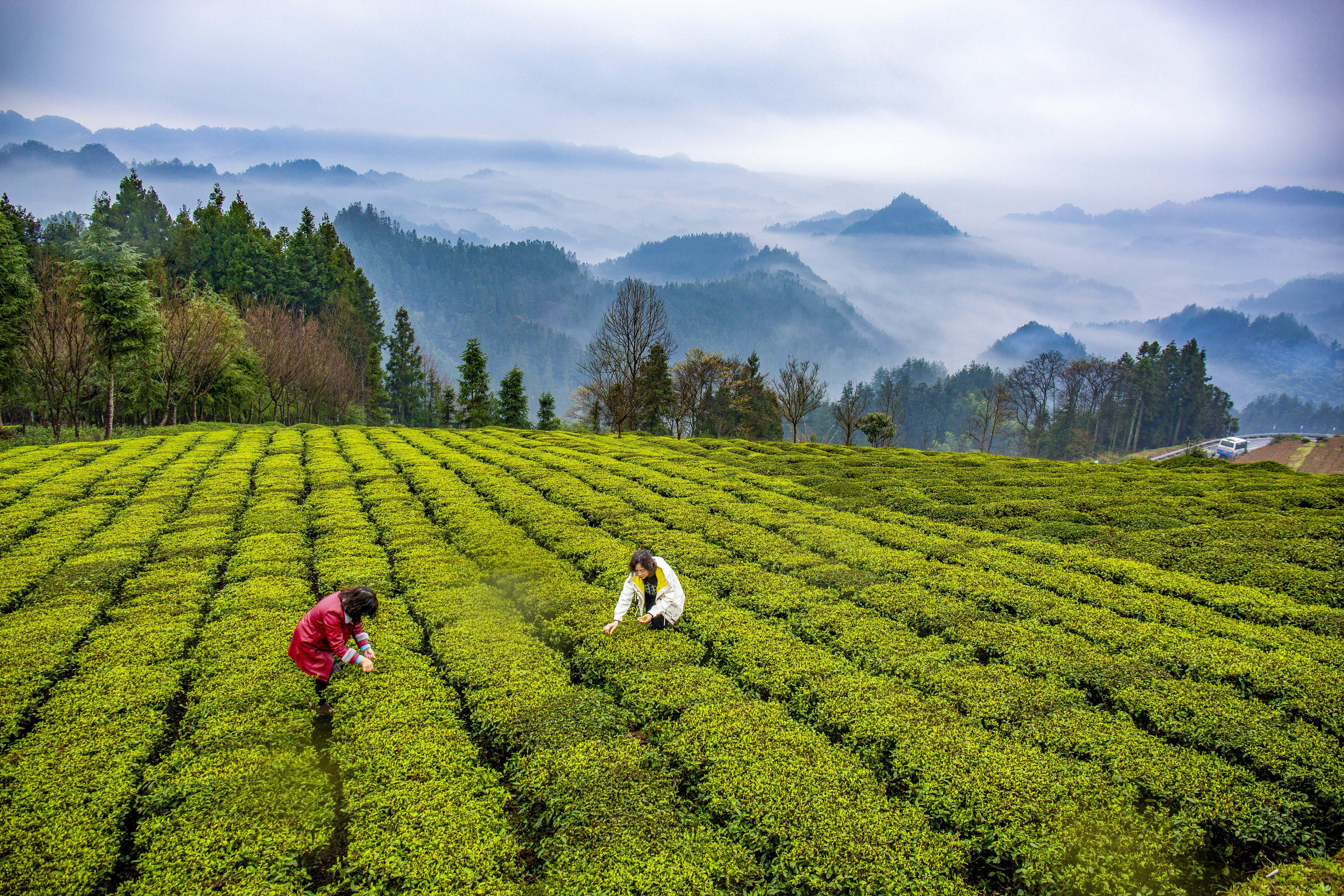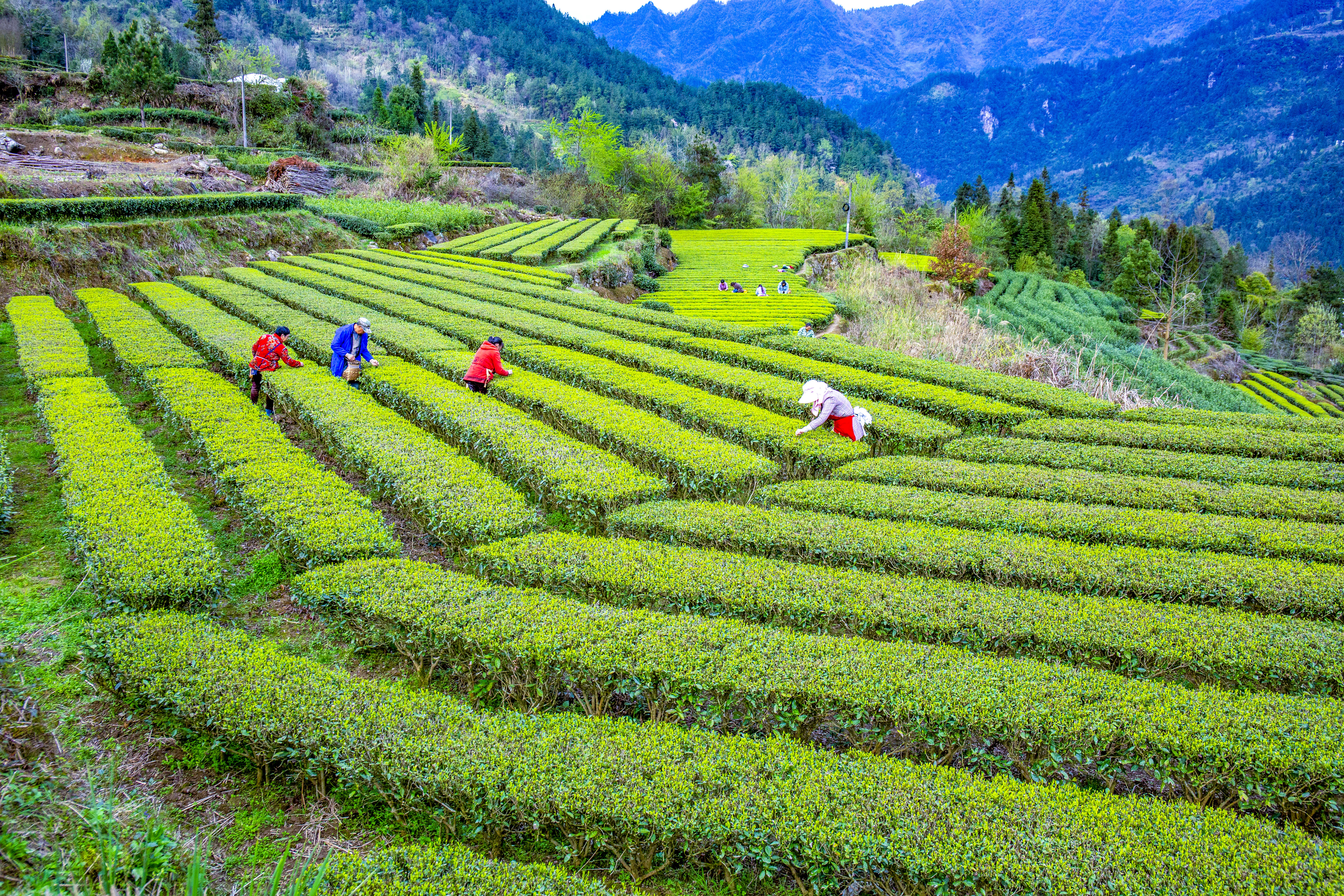 毛坝楠木村的红茶母本园,是春茶最先醒来的地方。星斗山主峰的雪意刚融,晨雾便如约而至,像一层轻柔的纱,将层层叠叠的茶垄裹进仙境里 。这里的茶树守着百年风骨,新芽沾着晨露,嫩得能掐出水来。茶农们挎着竹篮,指尖在枝头翩跹,捻起的不仅是新芽,更是祖辈传下的生计与希望。风过处,茶树翻涌成碧色的浪,混着采茶人的山歌,酿成山野间最动人的晨曲。