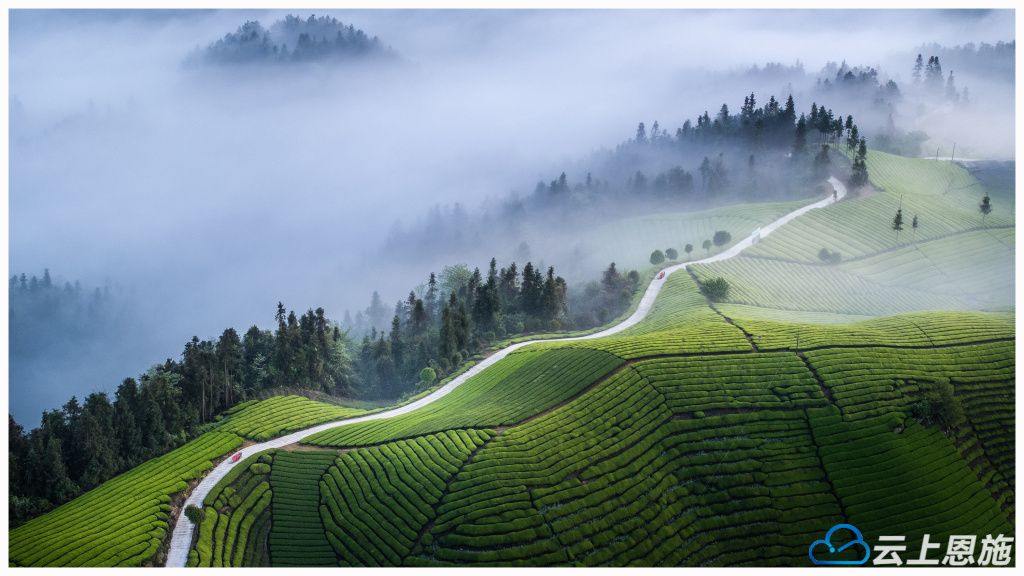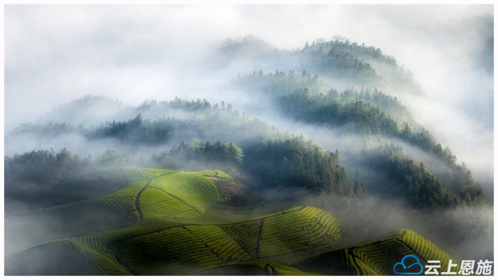木耳山、杨柳池、红罗沟等处,万亩连片茶园,时而身披缥缈轻纱,时而沐浴灿烂霞光,海浪起伏般的茶山,如梦似幻,摄影家们拍下了一帧帧精美的画卷。